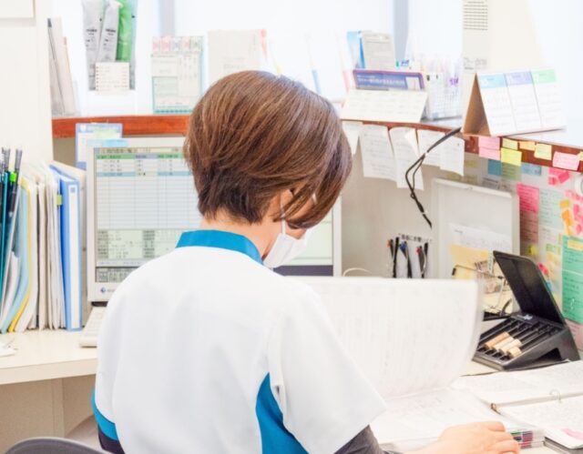担当しているのは受付業務が中心。人が足りないときには治療のアシスタントに入ることもあります。2/3が受付、1/3がアシスタントくらいの割合です。
